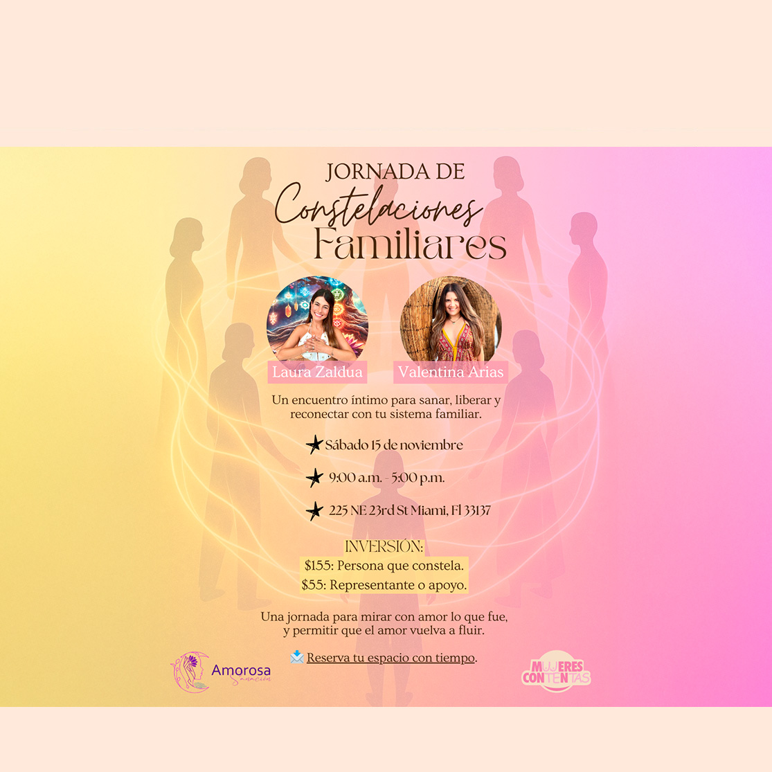Laura Zaldua, creadora de Amorosa Sanación, conoció a Valentina a través de su propia experiencia con las constelaciones familiares. Al sentir el poder transformador de esta herramienta, decidió traerla al espacio de Amorosa Sanación y unir fuerzas para ofrecer esta jornada única.